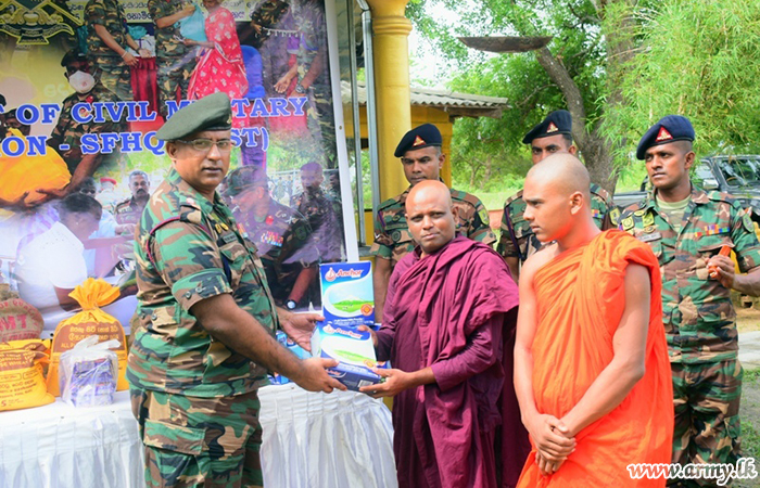 The consignment of those relief packs included essentials such as rice, dhal, sugar, spices, nutrients, sanitary needs, etc was distributed among those temples and monasteries by SFHQ-E troops, together with the donor.