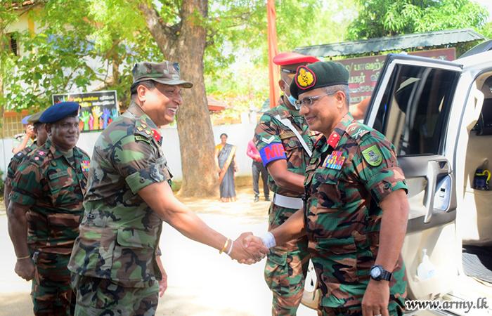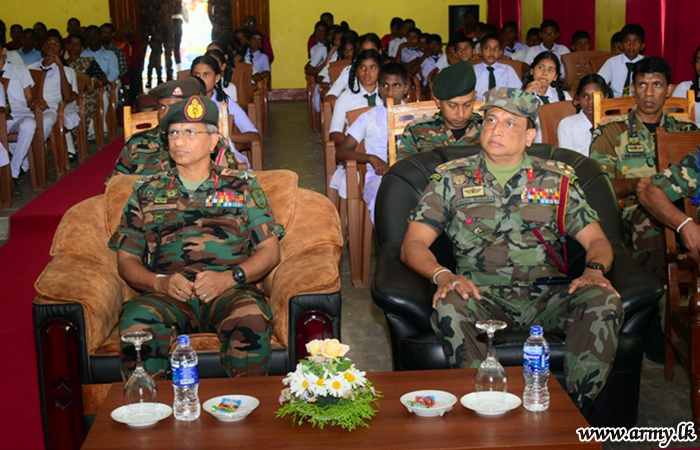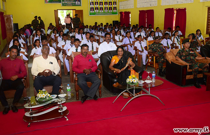 Major General Priyantha Jayawardena, Commander, Security Forces - East, together with Ms. Ahila Canagasooriyam, the Zonal Director of Education-Batticaloa, Brigadier Dilupa Bandara, Commander, 231 Brigade, Colonel Kasun Adikari, Colonel General Staff, 23 Division, Chief Coordinator Civil Affairs and Civil Affairs Officer of SFHQ - East, Commanding Officer of 4 Gemunu Watch, Mr. R Murugesh Pillai, Divisional Director of Education, the Principal Mr. S Pushpaharan, parents and a section of students attended the occasion.