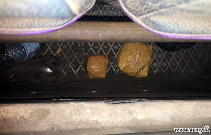 During the roadblock check, an unclaimed packet of ICE was found from the SLTB bus bound for Colombo from Thalaimannr at around 8.30 am.