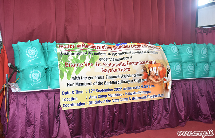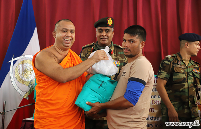 Dr Bellanwilla Dhammarathana Thero during the distribution delivered a sermon and also thanked the Commander, Security Forces -Mullaittivu for organizing such a community-oriented programme.