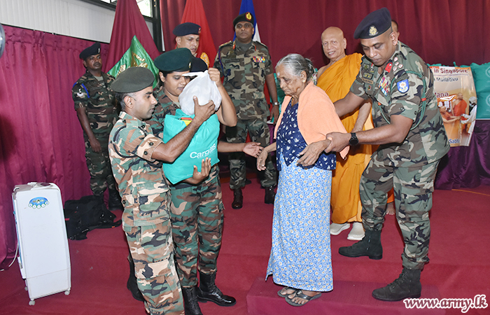 The Commander of the Security Forces -Mullaitivu as the Chief Guest of the event distributed the first few relief parcels. Major General Rohan Ponnamperuma, General Officer Commanding, 68 Division, Brigadier Wasantha Paalamakumbura, Brigadier General Staff of the Security Forces Headquarters-Mullaittivu, Brigadier Chaminda Gallappaththi, 682 Brigade Commander and the gathering of beneficiaries took part in the relief project.