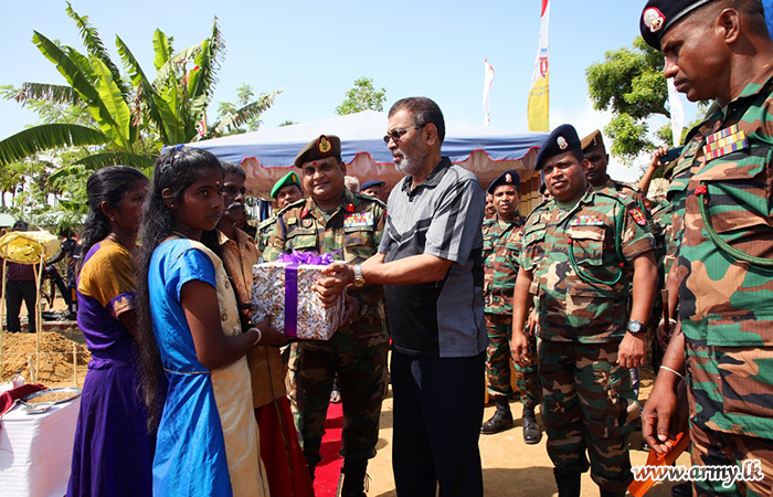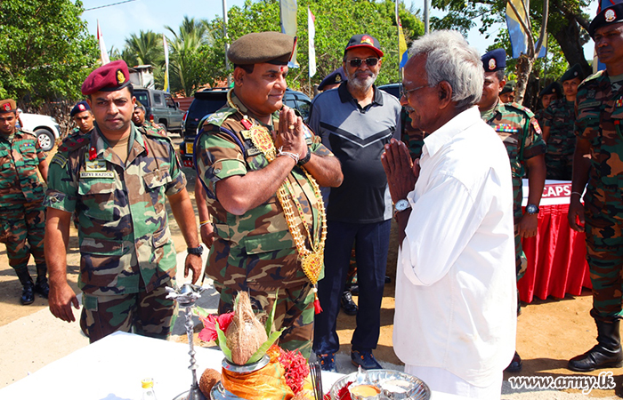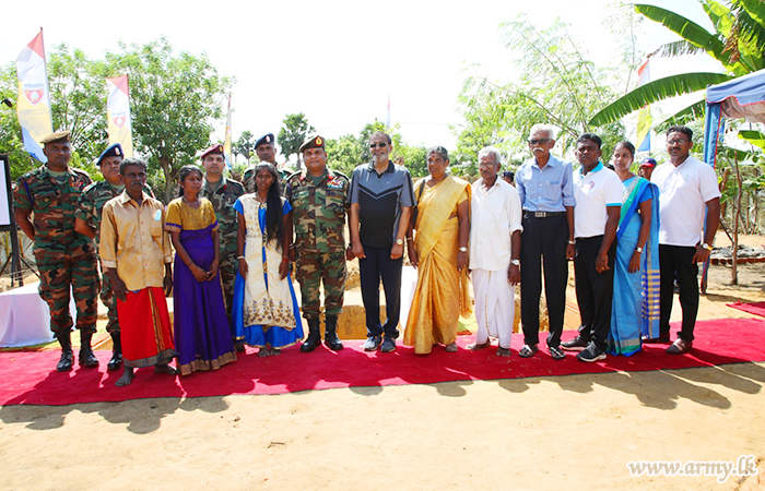 On Friday (16), the General Officer Commanding 51 Division, together with the sponsor and 513 Brigade Commander laid foundation stones for erection of the home in Chullipurama, amidst Hindu religious blessings and traditions. After the foundation-laying ceremony, the General Officer Commanding 51 Division provided a cash donation to the deserving family of the budding sports star.