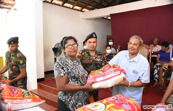 The 211 Brigade troops of the 21 Division of the Security Force Headquarters - Wanni with sponsorship provided by the Kadawatha-based ‘Sarana’ Buddhist Foundation of Mr Sunil Wijewardene and Mr Gnanasiri, together with their business partners gave away 350 dry ration packets and 100 packets of baby requirements to both women and pregnant women in Medawachchiya, Rambewa and South of Vavuniya on Friday (9).