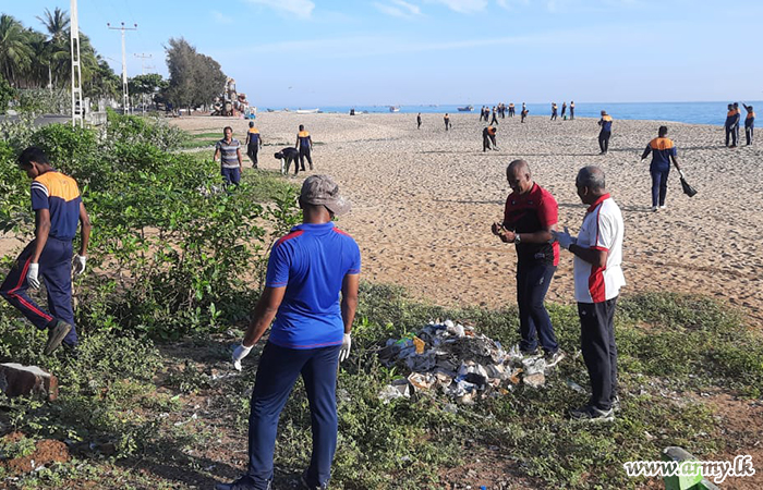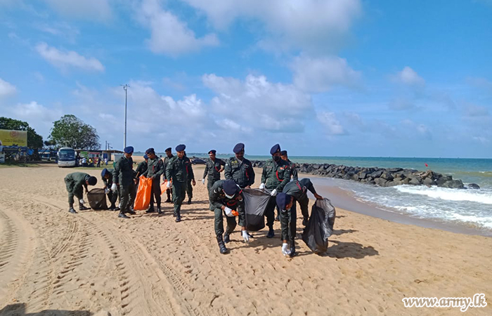 In line with the International Coastal Clean-up Day and Marine Resources Conservation Week (23-30 September), troops of the 11 (Volunteer) Sri Lanka Sinha Regiment (SLSR) of the 231 Brigade under the 23 Division of the Security Force HQ-East cleaned up the beach patch along Kattankudy to Batticaloa on Saturday (24).