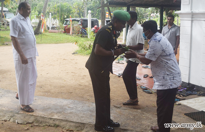 Chief incumbent at the Dharmaloka temple, Brigadier Rohitha Rathnayake, Commander 111 Brigade, Principal, Hindagolla Digampitya Vidyalaya, villagers and Other Ranks supported the conduct of the project.