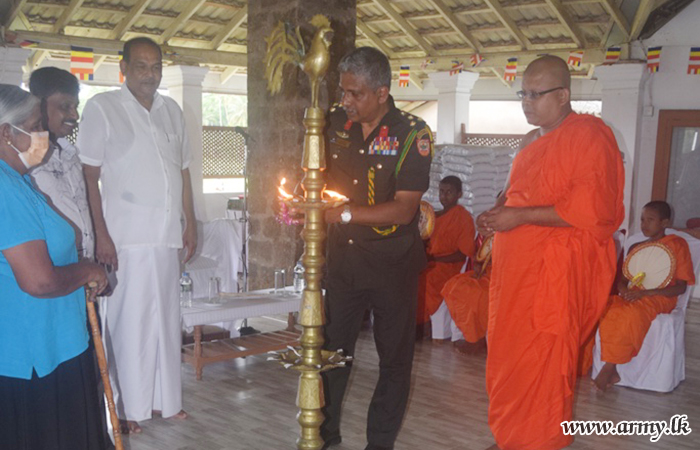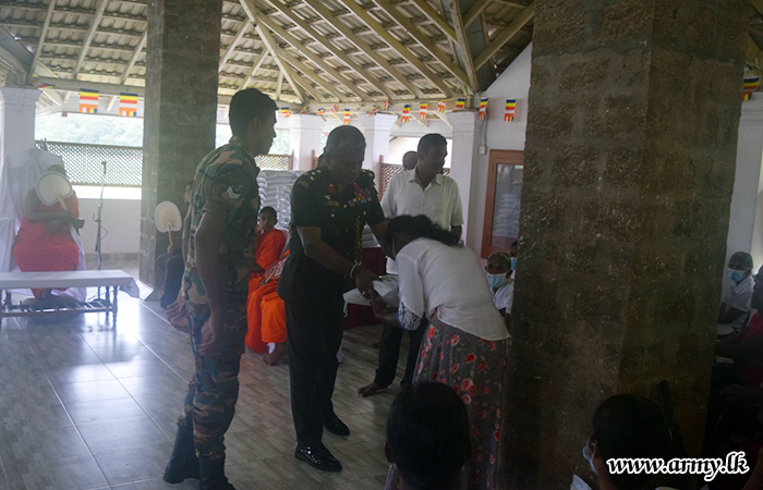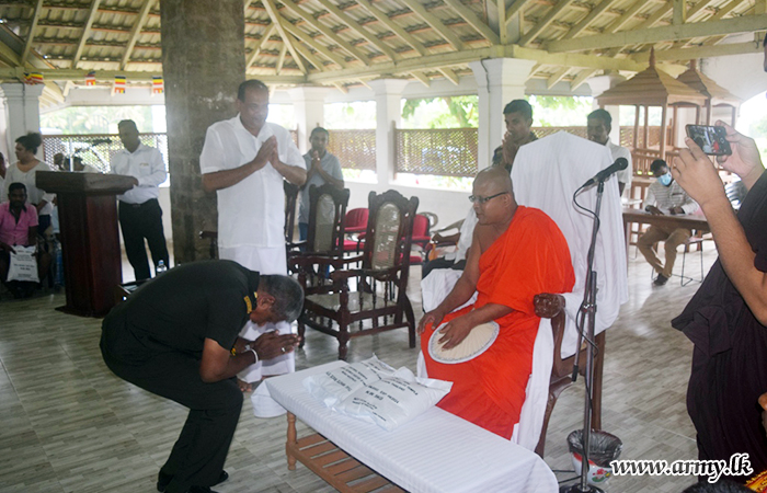 Troops of the 111 Brigade under command to the 11 Division of Security Forces -Central with patronage received from a donor organized the distribution of 160 free dry ration packs among needy civilians during arrangements at Kurunegala Hindagolla Sri Dharmaloka temple on Saturday (1).