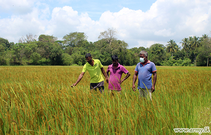 Major General Priyantha Weerasinghe, Commander, Forward Maintenance Area -North Central (FMA-North Central) on May 25 in collaboration with farmers in Shravasthipura motivated them to re-cultivate those paddy-fields that have been abandoned due to lack of fertilizer. The senior officer harnessing the support and expertise of state authorities on agriculture imparted knowledge on organic farming and motivated those farmers to re-start their ploughing and cultivating.
