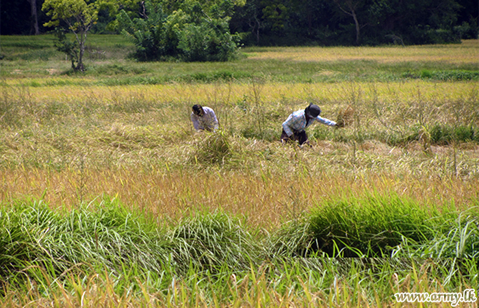 Major General Priyantha Weeerasinghe was also invited to participate in their harvesting ceremony. Several officers and Other Ranks serving the FMA-NC also joined the occasion.