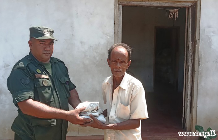14 Sri Lanka Sinha Regiment (SLSR) troops of the 641 Brigade of the 64 Division with the objective of helping affected adults in the area provided 50 lunch packets to elderly civilians living in Mandakandal area in Oddusudan after visiting their doorsteps on 25 September.