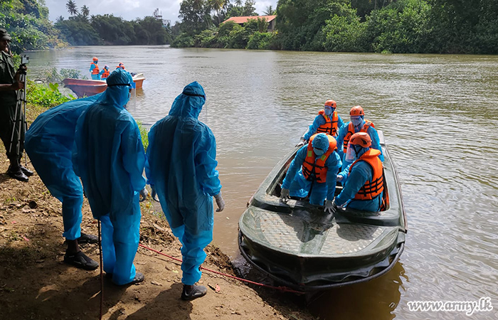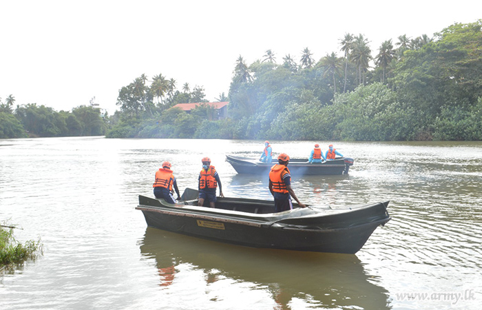Sticking to instructions given by the General Officer Commanding 14 Division Brigadier Roshan Jayamanna and Brigadier Vindana Kodithuwakku, Commander 144 Brigade the workshop got underway at 2 (V) Sri Lanka Light Infantry (SLLI) Regiment camp premises in Kelanimulla and emergency disaster practices were rehearsed on the banks of Kelani river.