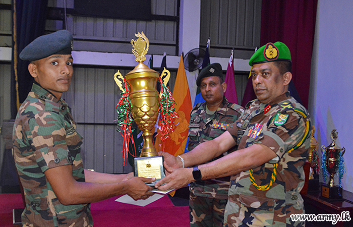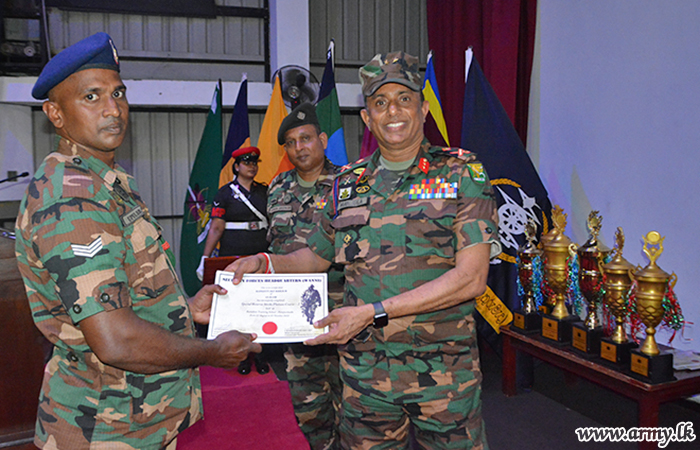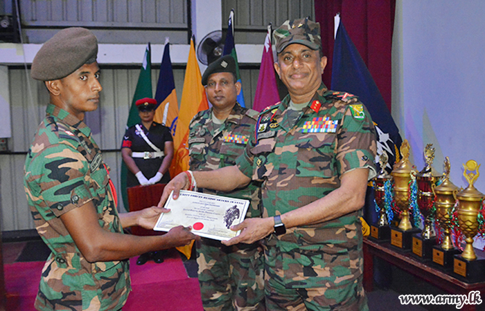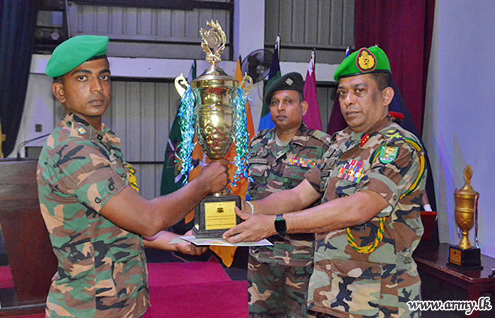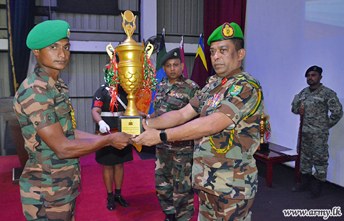 The Officers and Other Ranks including Lieutenant U M T K De Silva of 20 GR won the award for the Best Platoon Commander and Corporal Premasiri of 10 (V) Gamunu Watch was awarded the trophy for the All Rounder. Private M. Sandaruwan of 2 MIR became the Best Shooter while Private Amarasena of 9 GR won the award for Best Physical Instructor.