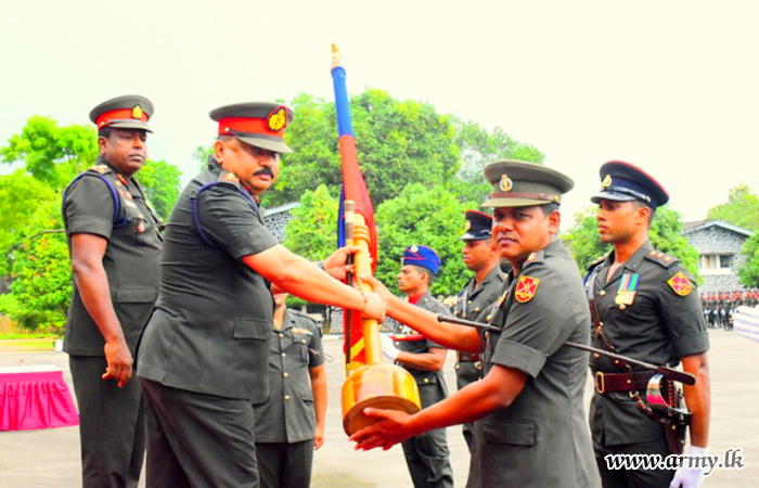 The Colonel Commandant awarded the Championship flag of the Inter Regiment Drill competition to the Commanding Officer of the 5 Field Engineer Regiment in recognition of their best performances.