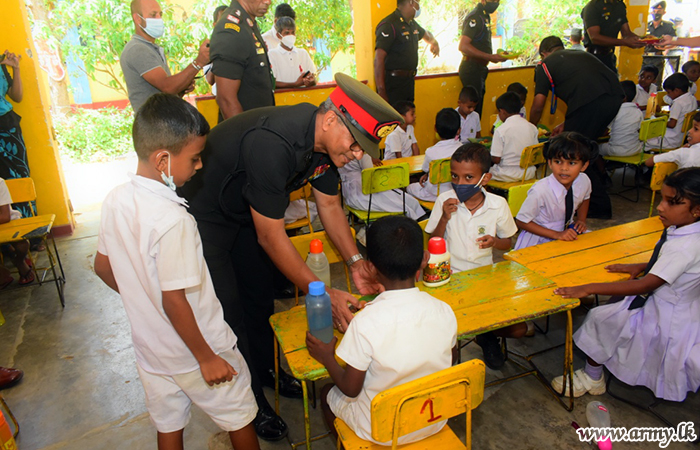 160 Students and 15 Teachers with staff, enjoyed the lunch, sponsored by Ven Ketakumbure Dharmarama Thera, Principal Nalanda Buddhist School at Pallekele, Furthermore, Major General Priyantha Jayawardene, Commander, SF-(E ) attended both distribution ceremonies as the Chief Guest with the General Officer Commanding 23 Infantry Division, Commander, 232 Infantry Brigade, Chief Civil Coordinating Officer SF-(E), Civil Coordinating Officer SF-(E), Commanding Officer,12 Battalion Sri Lanka National Guard, Several Officers, Other ranks.