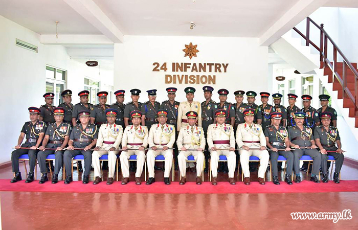 On arrival, a Guard Turnout at the entrance saluted him before he was invited to the formal Guard of Honour in the parade square. He also posed for a group photo with all officers and joined refreshments with all ranks at the 24 Division HQ.