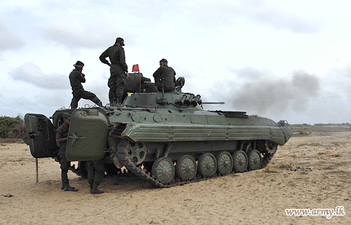 They participated in live firing training sessions with the help of two BMP MK II armoured vehicles, two T 89 VPI armoured vehicles, one WMZ 551B armoured vehicle, 30 mm canon guns, 12.7 mm Anti Air Craft Missiles (AAMG type QJC 88) and 7.62 mm PKT weapons.