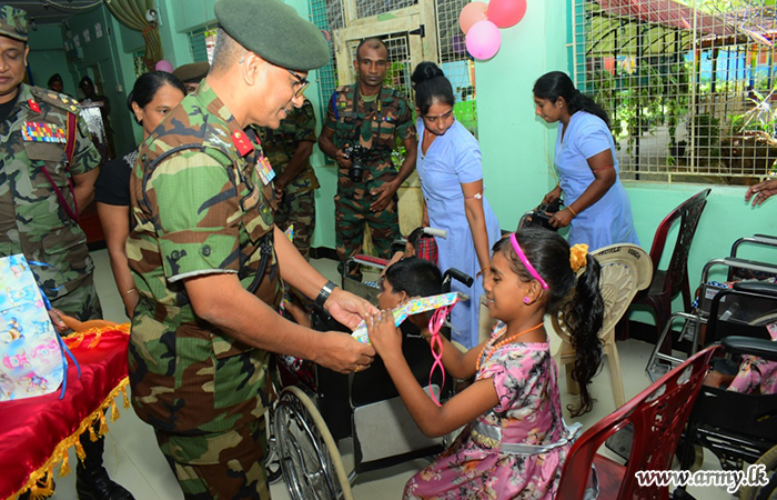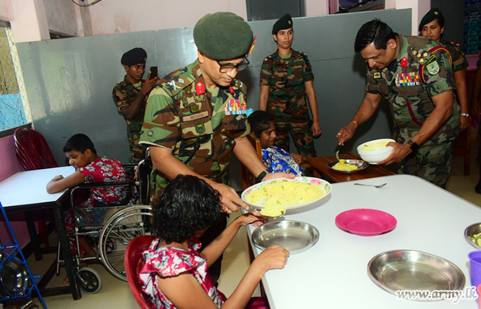 Children at 'Ozanam' Center for Children with Special Needs at Sathurkondan, Batticoloa, thanks to an initiative of the Security Force HQ- East were the recipients of free dry ration packets and a delicious lunch on Sunday (09) with sponsorship, extended by woman soldiers of the 5 (Volunteer) Sri Lanka Army Women’s Corps (SLAWC) at Welikanda.