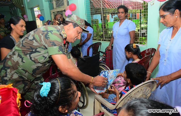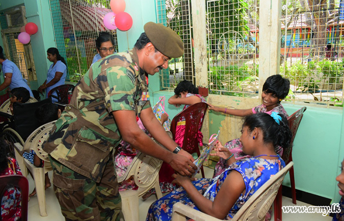 Furthermore, Major General Priyantha Jayawardena, Commander, SF-(E) attended as the Chief Guest taking a personal interest in the project took time off on Sunday (09) to spend a couple of hours with those inmates during the treat and afterwards. Those children with different skills presented their artistic flavour and aesthetic values by drawing arts and showing their handcrafts and dancing, etc to the officers and soldiers present at the venue.