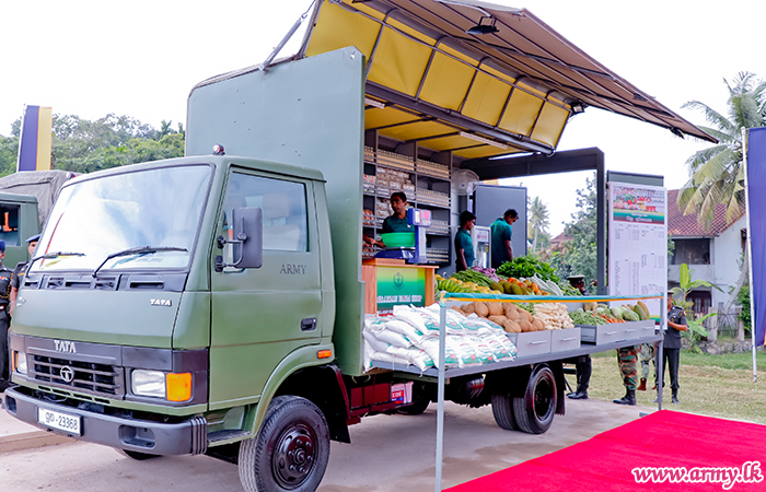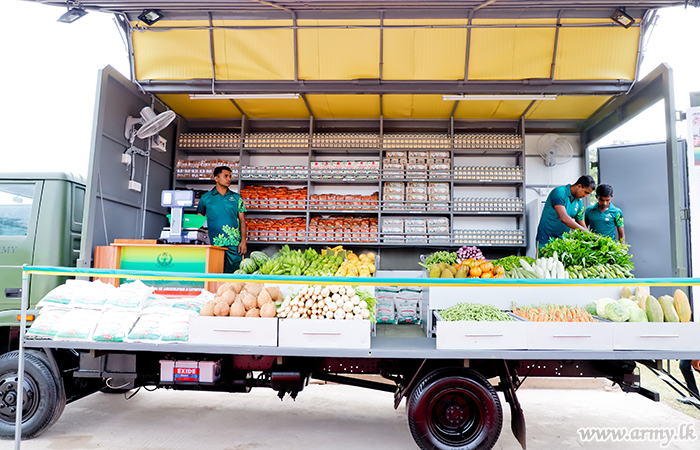 Well aware of the consequences of economic hardships, common to All Ranks too in the Army, the Corps of Agriculture and Livestock, together with the Sri Lanka Army's Directorate of Agriculture and Livestock on a suggestion, made by the Commander of the Army, Lieutenant General Vikum Liyanage this afternoon (11) launched a Mobile Agricultural Products Shop where Army-produced vegetables and dairy products are sold to All Ranks at a concessionary price.