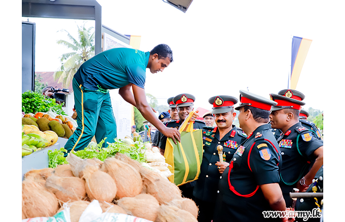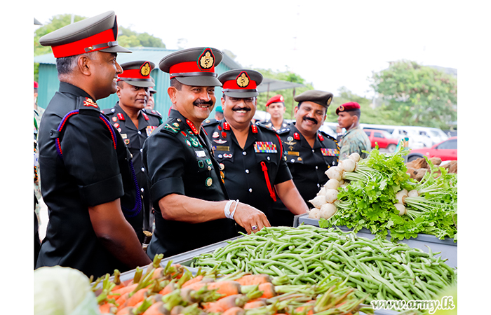 Lieutenant General Vikum Liyanage, Commander of the Army at the invitation of Major General WBSM Abeysekara RSP USP, Colonel Commandant of Sri Lanka Army Corps of Agriculture and Livestock, graced the inaugural occasion as the Chief Guest and symbolically bought a few varieties of vegetables and other products.