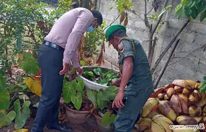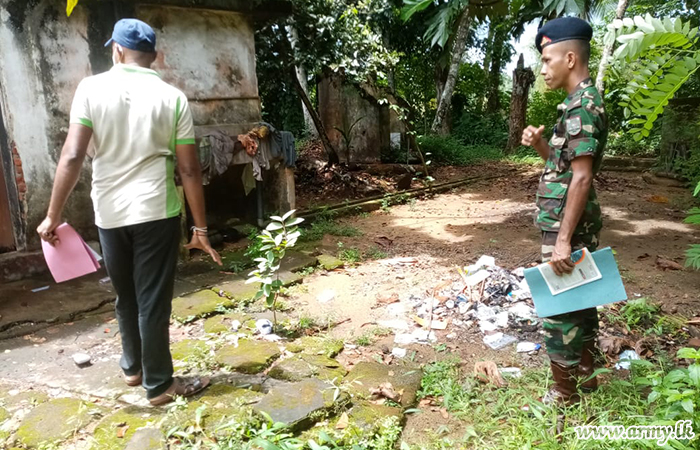 In cooperation with the government’s National Dengue Epidemic Prevention Campaign officials, troops inspected breeding places of Dengue larva in government and private institutes, religious places, schools and other public places, inclusive of water storage tanks, flower pots and vases, garden fountains, bird baths, fridge trays, water dispenser trays, broken cisterns, discarded bottles, tins, discarded tyres, coconut shells and all possible sites.