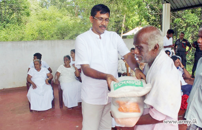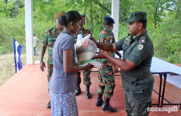 6 Sri Lanka Light Infantry troops of the 533 Brigade under command to the 53 Division with sponsorship, provided by the donor, Engineer Prasanna Sandakelum gave away a stock of dry rations to 52 low-income families in Mihinthale Bogahayaya area who have been badly affected due to the economic crisis on Sunday (16).