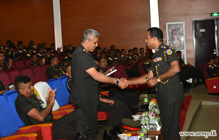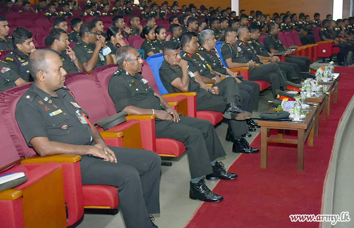 Officer Cadets, Instructors and Other Ranks at the Sri Lanka Military Academy (SLMA) recently listened to a lecture on ‘Military Literature’, delivered by Lieutenant Colonel Sujith Chaminda, Chief Editor of the ‘Ranaviruwa’ magazine of the Directorate of Psychological Operations.