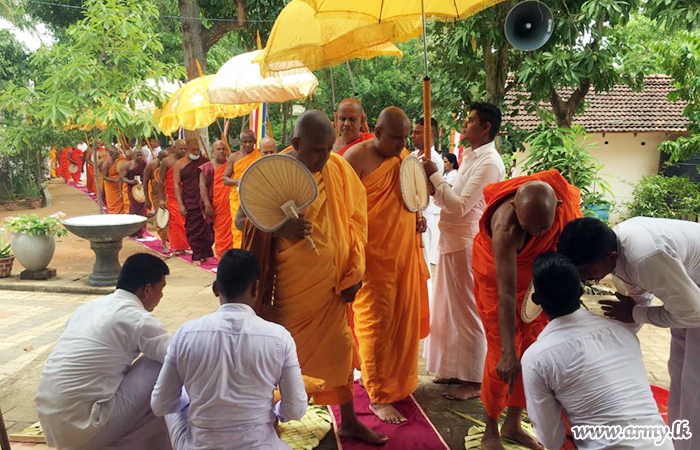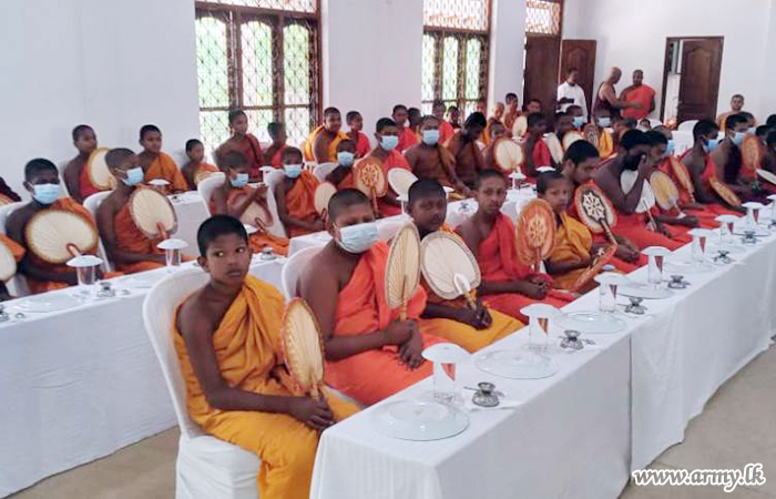 Troops organized the event at Medawachchiya, Issinbessagala Raja Maha Viharaya as per directions of the 211 Brigade Commander, Brigadier Chaminda Wijerathne, following sponsorship extended to the Army by Mr Sunil Wijewardana of ‘Sarana Buddhist Foundation’, together with Mr Seah Wong Chi, a Singaporean businessman. Due to prevailing economic hardships, many monastery-based monks in remote areas in the North Central Province find it difficult to get their ‘Sivupasa’ (essentials for monkhood) on a regular basis.