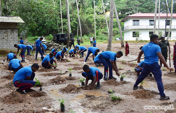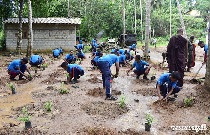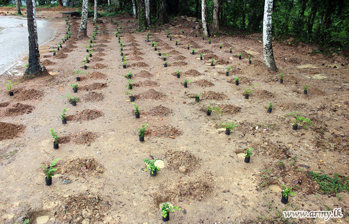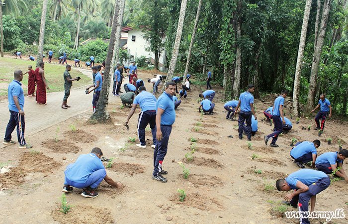 6 Sri Lanka Artillery troops of the 141 Brigade as their contribution to the Army anniversary planted 500 Jasmine saplings inside the Dathukanda Sri Jinendrarama Raja Maha Viharaya in Kalalpitiya at the request of the monks on Tuesday (18).