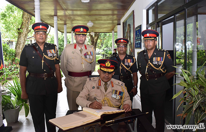 Troops presented a Guard Turnout salute at the entrance and a subsequent Guard of Honour where SLEME troops presented arms and honoured him.