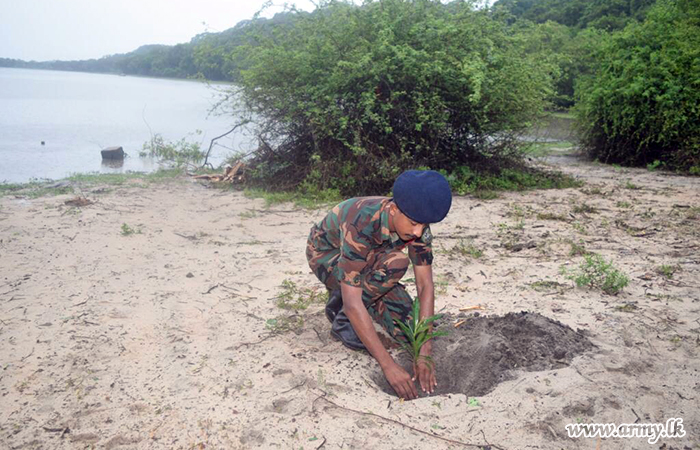 Troops of the 221 Brigade of the 22 Division launched a tree planting programme in Kuchchaweli, Pallawakulam area on Friday (21). Troops of the 17 Sri Lanka National Guard under command to the 221 Brigade under the project planted 1000 'Mee' saplings during the project.