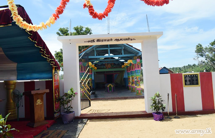 9 Sri Lanka National Guard (SLNG) troops of the 681 Brigade of the 68 Division under command to the Security Force Headquarters-Mullaittivu formally left the Army- constructed main entrance gate and side wall of the Sugandhipuram Sri Ramar Hindu Kovil at Puthukudiiruppu to the management newly on 19 0ctober during a formal arrangement.