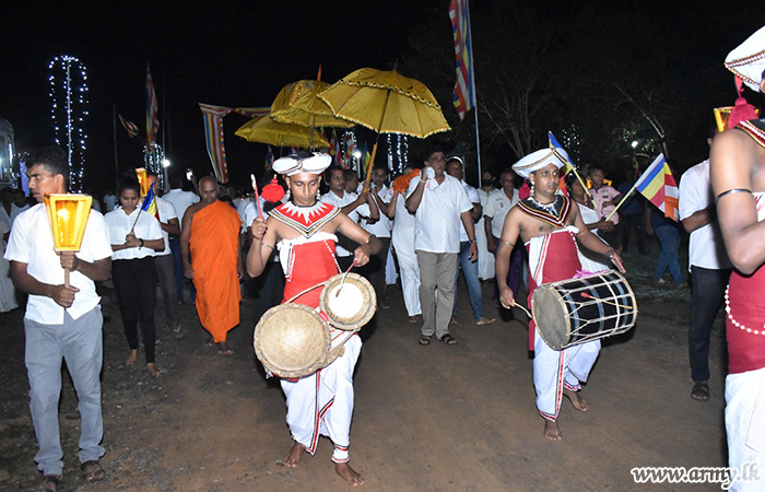 Major General (Retd) Jagath Dias, Brigadier Suresh Perera, Brigadier General Staff of Security Force Headquarters-Mullaittivu, 593 Brigade Commander Brigadier Pradeep Kulathilaka, together with 593 Brigade troops attended the ceremonies.