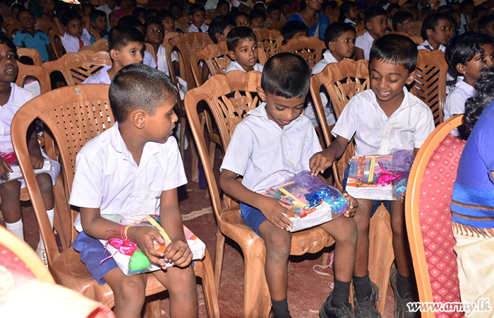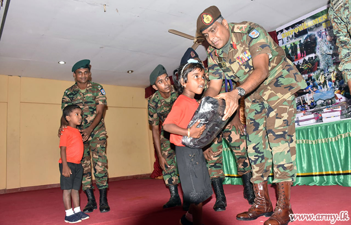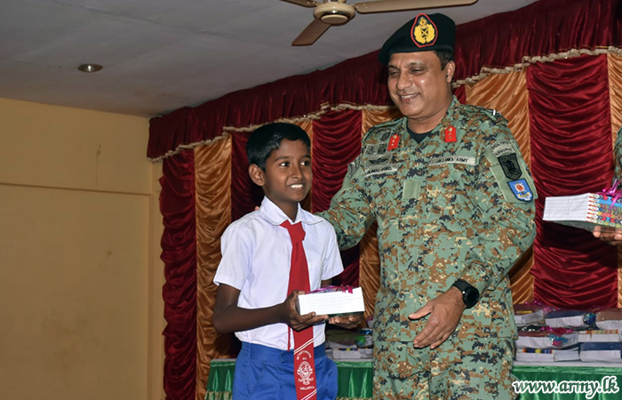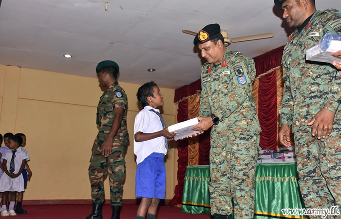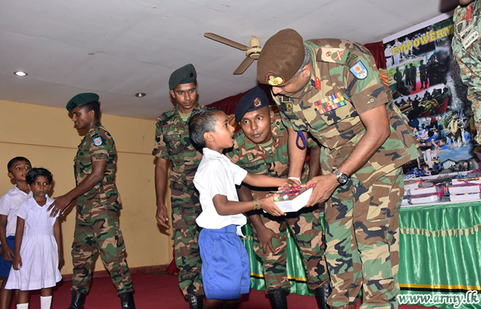Those beneficiaries were selected in close consultation with Grama Niladari officials in respective areas and school authorities and 6 Sri Lanka Sinha Regiment (SLSR) troops organized the distribution project in the school premises with the support of the principal and teachers.
