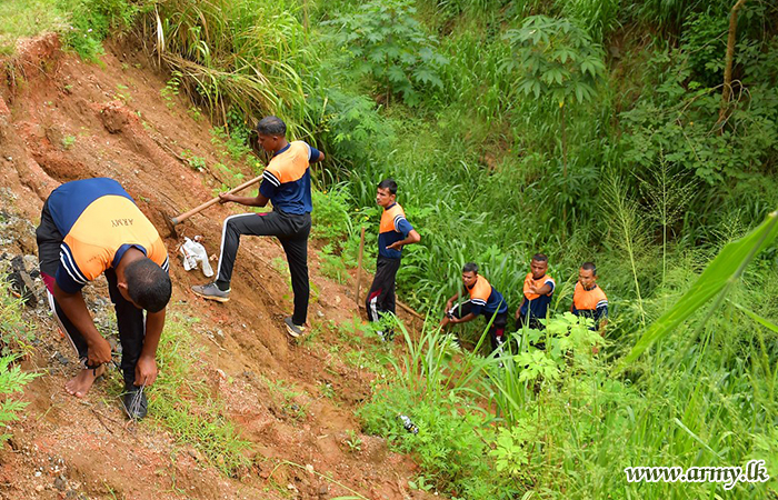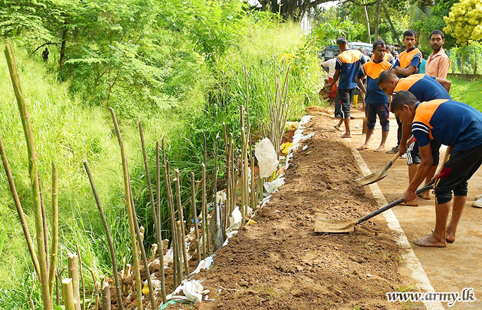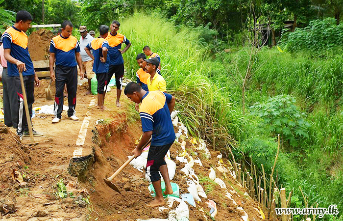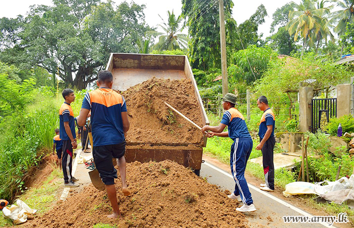 Vijayabahu Infantry Regiment (VIR) troops at the Regimental Centre promptly attended to the repairs of the road patch, adjoining the Baththalgoda Lake in Periyakadunelawa, Ibbagamuwa after it was affected due to a minor landslide following heavy rainfalls on 19 October 2022.