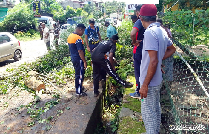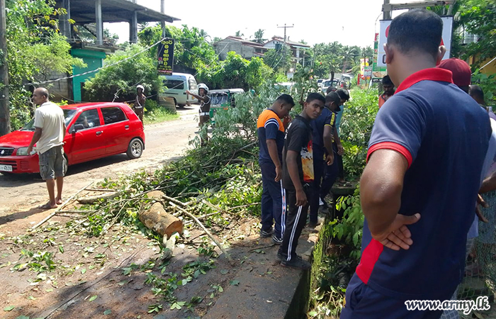 A team, inclusive of 01 Officer and 10 Other Ranks in cooperation with authorities of the Road Development Authority in Gampaha and civilians cleared the huge tree that blocked the vehicle movement near 'Lak Sathosa' junction.