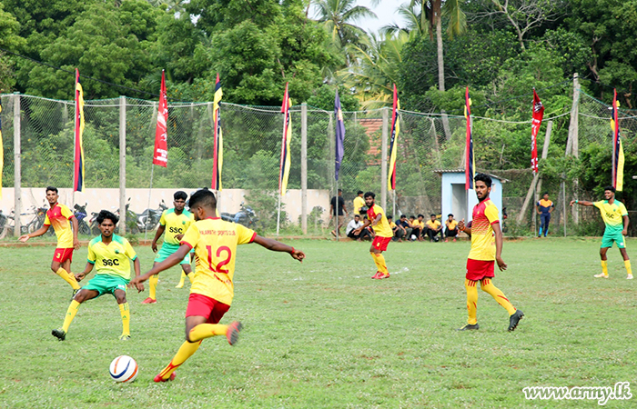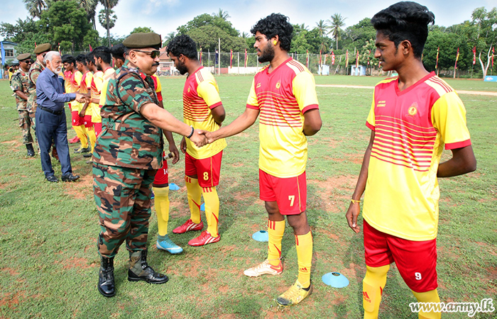 The Inter Club Soccer Tournament, organized by the 551 Brigade of the 55 Division of the Security Force HQ-Jaffna, covering Karaveddi area and Point Pedro in the Divisional Secretariat Division and competed by eight civil clubs got underway during 12 - 22 October under the close supervision of Major General Prasanna Gunaratne, General Officer Commanding, 55 Division in accordance with guidelines given by Major General Chandana Wijayasundara, Commander, Security Forces-Jaffna.