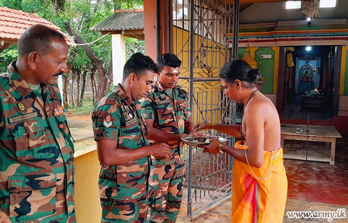 In parallel with Monday's Hindus' Festival of Lights, 'Deepavali', 51 Division troops of the Security Force HQ-Jaffna as per guidelines given by the General Officer Commanding, 51 Division, conducted a 'Shramadana', just 2 days prior to the Deepavali Day in 69 Kovils, situated in the Jaffna peninsula, and assisted priests to decorate those compounds with hundreds of multi-coloured bulbs.