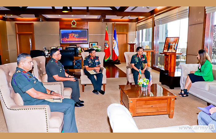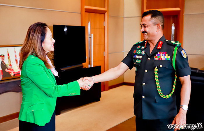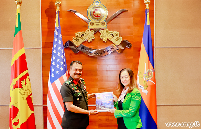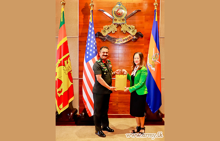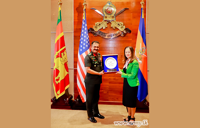 The Ambassador of the United States of America in Sri Lanka, HE Julie J. Chung paid a courtesy call on the Commander of the Army, Lieutenant General Vikum Liyanage on Thursday (27) at the Army Headquarters, Sri Jayewardenepura, Pelawatte, Battaramulla.