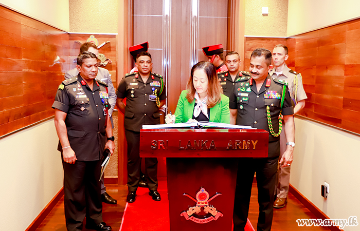 The cordial meet that ensued after Her Excellency was welcomed by Major General HMLD Herath RSP USP psc, Chief Signal Officer and ushered to the Office of the Commander of the Army, largely focused on the bilateral training cooperation, demining and EOD assistance, fulfilment of Sri Lanka Army’s cyber security and communication capabilities etc.