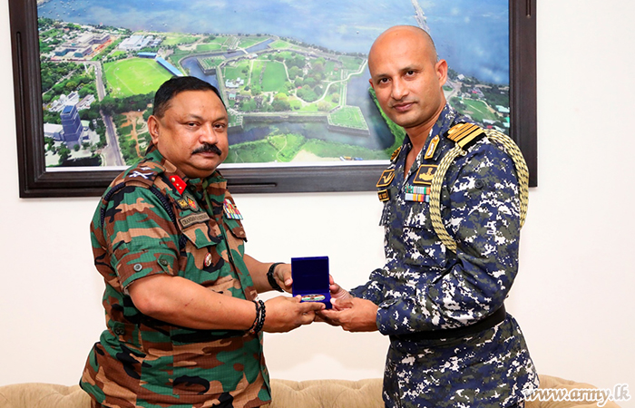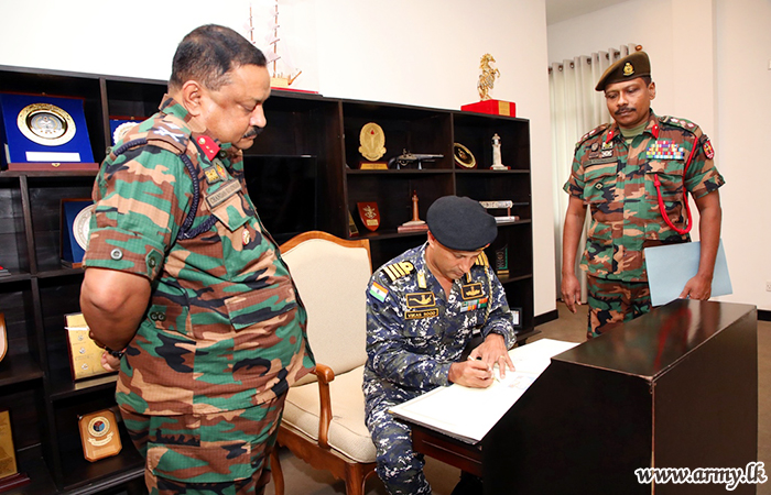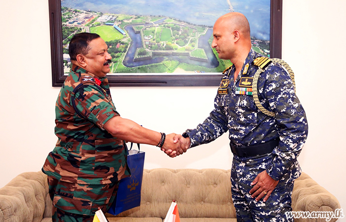 Colonel Asitha Pushpakumara, Colonel General Staff of the Security Force Headquarters - Jaffna warmly welcomed the visiting Defence Adviser before he was ushered to the office of the Commander, Security Forces- Jaffna, Major General Chandana Wijayasundara for a formal meeting.
