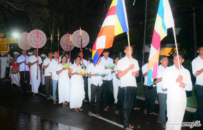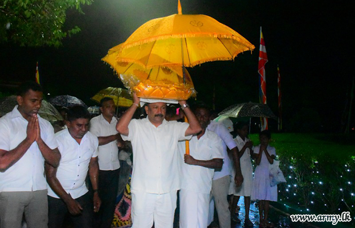 Troops supported the conduct of ‘Bodhi Pooja’, Katina Perahera and other preparations on the directions of the Commander, Security Forces - East, Major General Priyantha Jayawardena. Venerable Idanpitiye Wajiralankara Thero, Incumbent Thero invoked blessings on the troops and commended them for their support.