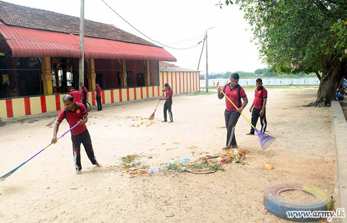 As directed by respective 521, 522 and 523 Brigade Commanders and Commanding Officers, 11 Field Engineer Regiment troops, 11 Vijayabahu Infantry Regiment troops and 15 (V) Gajaba Regiment troops carried out those community-oriented assignments with a view to promoting goodwill and holding 'Deepavali' offerings in a garbage free milieu.