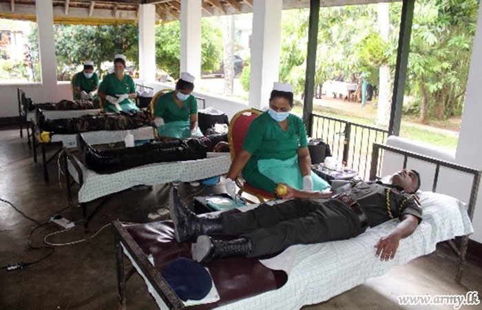 10 Sri Lanka National Guard (SLNG) troops of the 144 Brigade under the 14 Division of the Security Force HQ-West on account of their 32nd Anniversary launched a blood donation project at Abinawaramaya temple in Akuregoda on Thursday (3) with the participation of 75 Army personnel.