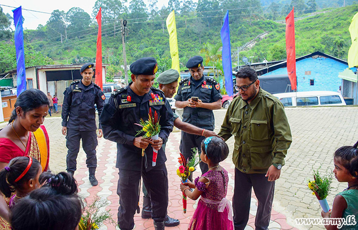 The Army troops of the Security Forces Headquarters - Central with sponsorship given by a Colombo - based philanthropist distributed dry ration packs among 75 needy families, resident in the close by area, adjacent to the Kahagalla Tea Estate Company on Saturday (5).