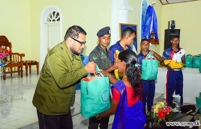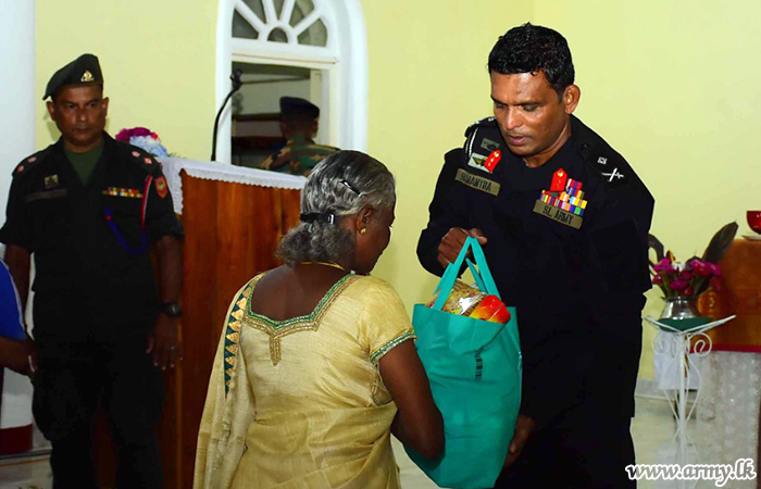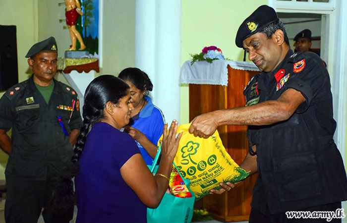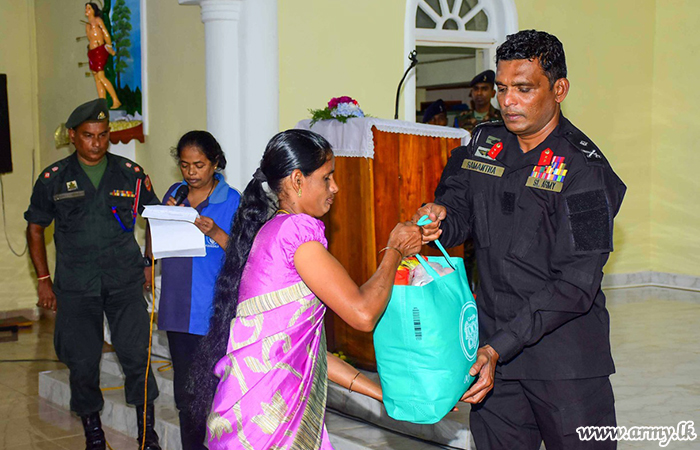 The donor, Mr Krishna Gopi at the request of Major General Samantha Silva, Commander, Security Forces -Central, under the relief project provided dry ration packs, each worth Rs. 7500.00 to those families as those needy people are among the worst affected community in the area.