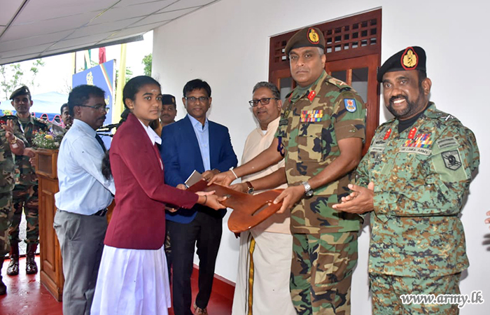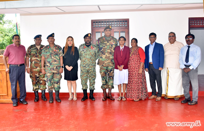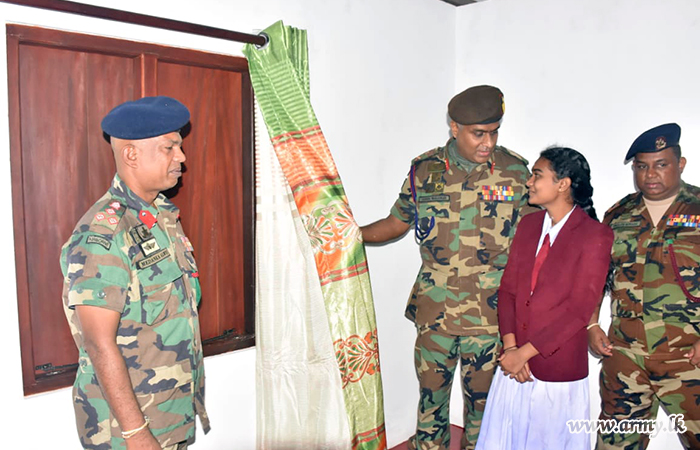 On 9 November, Major General Sanjaya Wanasinghe, Commander, Security Forces - Mullaittivu as the Chief Guest attended the inaugural warming ceremony of the new house where Hindu religious rites and rituals were observed. The Chief Guest, together with the sponsor, Major General (Retd) Ravi Rathnasingham and representative donors unveiled a plaque and cut a ribbon before the keys were delivered to the beneficiary.