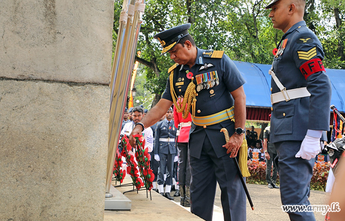 The Remembrance Day alias World Poppy Day (November 11) commemorative ceremony that recollects memories of worldwide fallen War Heroes, inclusive of those who perished in World Wars, organized by the Sri Lanka Ex-Servicemen’s Association got underway this morning (13) at the cenotaph at Viharamaha Devi Park, Colombo.