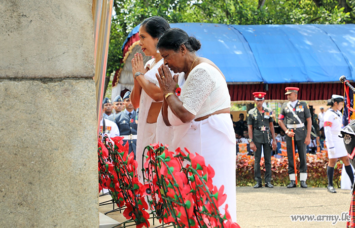 After the Chairman of the Sri Lanka Ex-Servicemen’s Association (SLESA) with office-bearers received the day's Chief Guest and invitees before floral-wreaths were laid at the foot of the cenotaph.