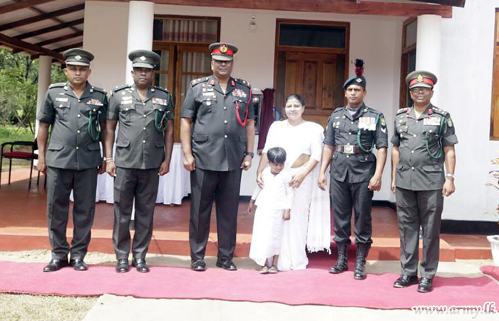 Major General Janaka Priyadarshana, General Officer Commanding, 66 Infantry Division who is also from the same Regiment as the Chief Guest attended the house-warming ceremony at Diyabeduma, Dehiattakandiya together with the MIR Centre Commandant, Brigadier Anura Abeysinghe and the Commanding Officer, 5 MIR.