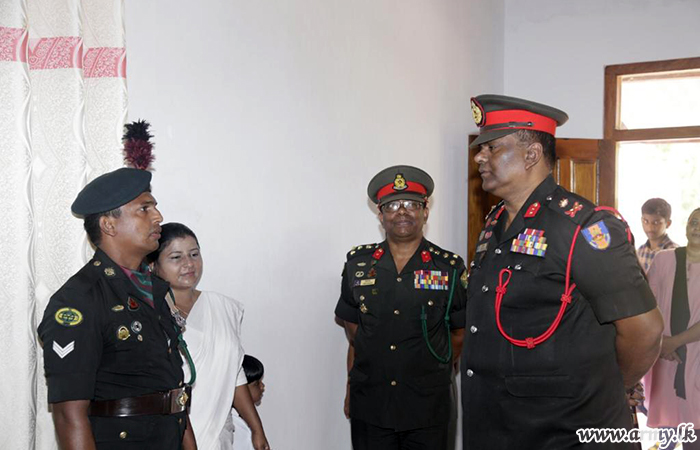A Senior Non Commissioned Officer of the 2 MIR accordingly received the keys of the new house erected for him at Galgamuwa from the architect of the project, Major General Channa Weerasooriya, Colonel of the Regiment MIR and Deputy Chief of Staff on Saturday (12) during a simple ceremony.